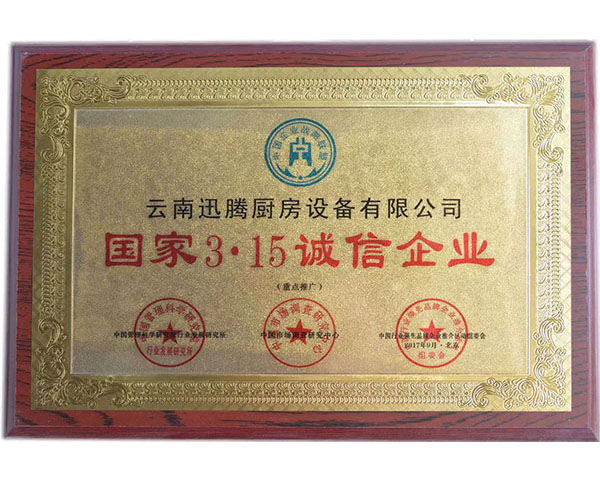 国家3.15诚信企业荣誉证书